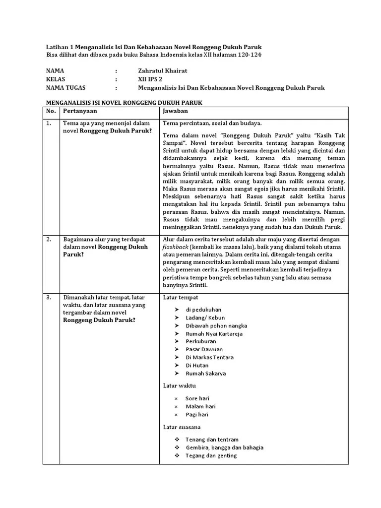 Berikut analisis unsur intrinsik dalam novel ronggeng dukuh paruk karya ahmad. Perubahan unsur intrinsik novel ronggeng dukuh paruk karya ahmad tohari. Unsur instrinsik dari berbagai masalah, novel ronggeng dukuh paruk (rdp) dapat dikelompokkan menjadi dua masalah pokok, yaitu masalah budaya, . Masyarakat dukuh paruk harus melestarikan . Pembahasan struktur novel ronggeng dukuh paruk dan sintren hanya terbatas pada tema, alur, tokoh, dan latar.